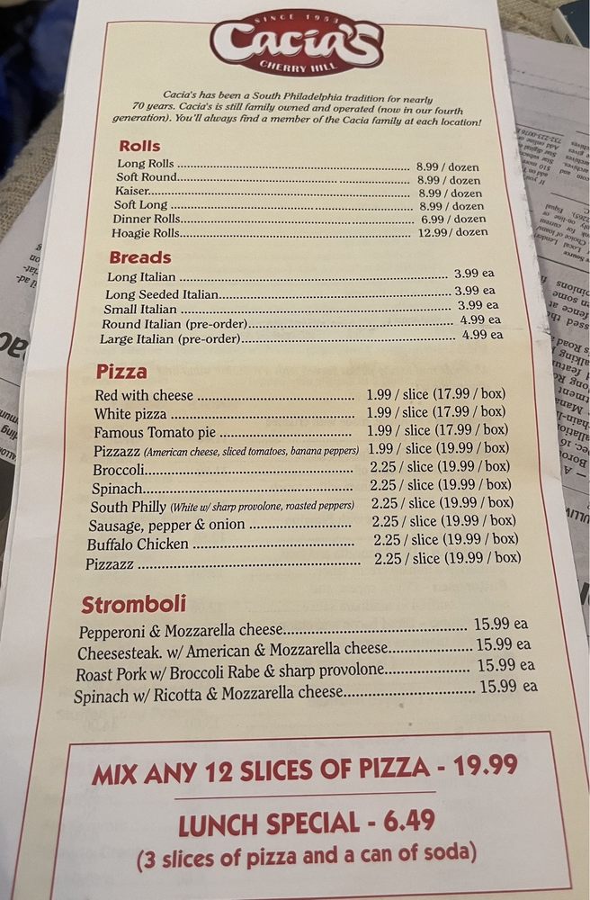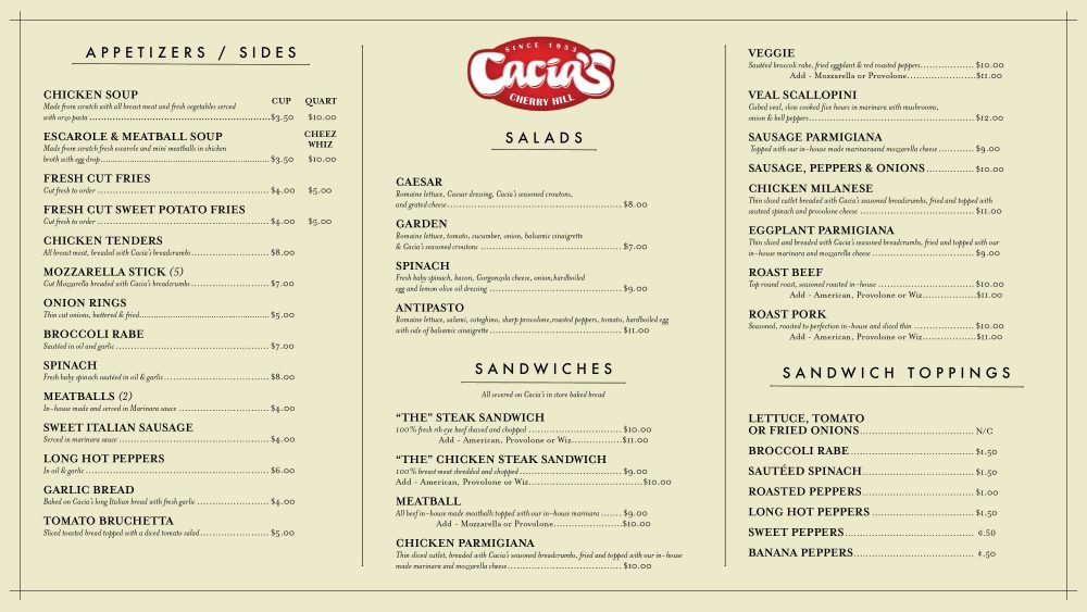 With options for delivery and takeout, Cacia’s brings a slice of Italy to Cherry Hill, all while ensuring a warm and welcoming atmosphere!